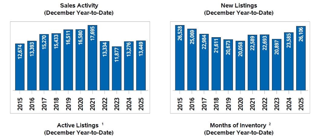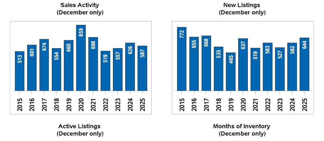 Realtors sold 587 homes in December through the board’s Multiple Listing Service (MLS). While that was down sharply from the previous month, it was on par with long-term averages for December, yet showed “continued buyer caution,” said the board, presumably in the face of uncertainty about federal civil service job cuts and the ongoing trade war with the United States.
