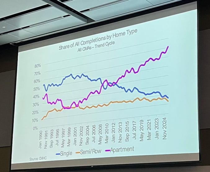 While saying he expected the rental market to get “hammered” this year because reduced immigration — typically a source of new renters — has slowed and high interest rates, which kept people out of the market, have declined, Cathcart anticipated an unspecified increase in both resale transactions and prices. That, judging from Realtors’ faces in the room, was excellent news.