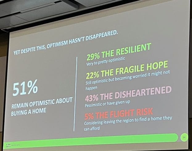 While he said optimism hasn’t vanished from the public outlook, with 51 per cent remaining optimistic about buying a home, Coletto did issue a warning that doubt in the system can lead to people starting to experiment. “They start to do things that they wouldn’t otherwise do. And I’m not going to pass aspersions. Well, maybe I will. A lot of Americans doubt a lot of their system, and you see the kind of politics that they get as a result. That’s why I think, in this country, housing will be one of the most powerful motivators in the next municipal election… It’s not a niche concern. It’s a defining political force.”